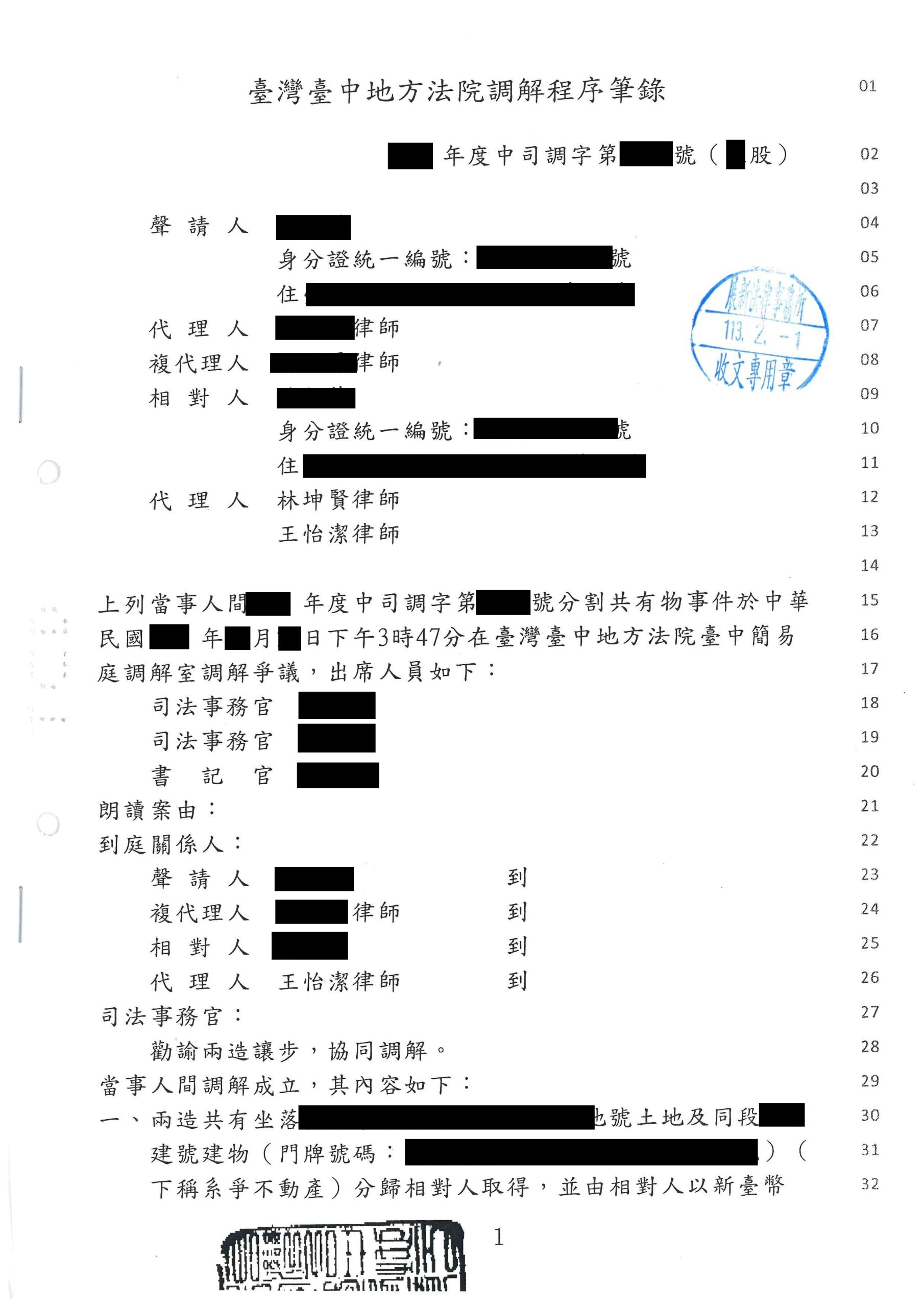 當事人與前女友共同出資購買新房,二人感情變故分手後,前女友起訴請求變價分割房屋,價金雙方平分,但當事人認為自己出資金額超過一半,不應僅分得一半價金且表明有意購買對方之持分。本所為當事人整理相關事證,釐清其與前女友間之金錢借貸關係後,經過多次調解,成功讓當事人得以購買對方之房地持分,讓事件圓滿落幕。